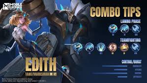 Sebagai EXP laner, Edith bisa menjaga lane dengan stabil sambil scaling ke late game. Sementara sebagai roamer, ia bisa menjadi inisiator yang membuka war dan mengganggu formasi lawan.